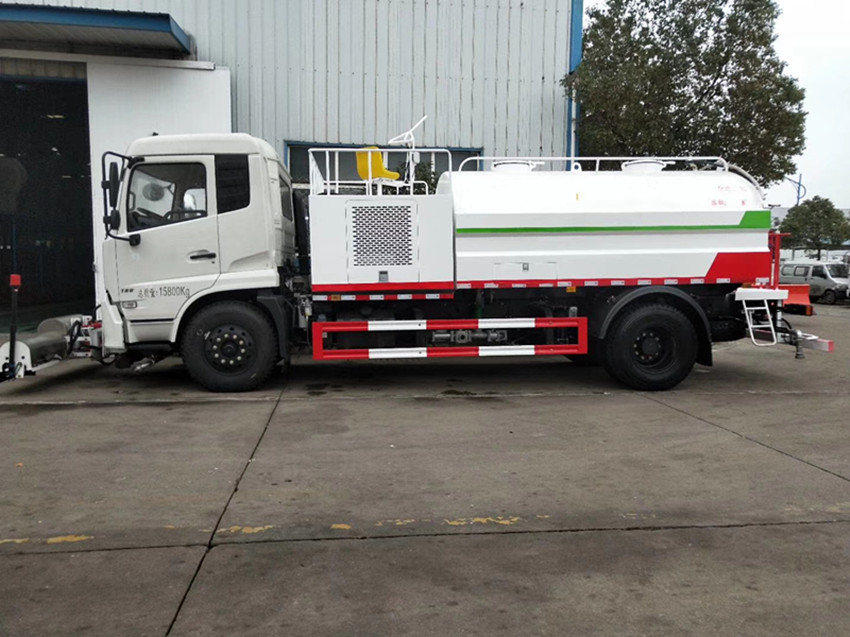 灑水車吸程≧7米,灑水寬度≧14-16米,射程≧25-40米,引水時間<5min,流量60m3/h。前沖(噴)、后灑、帶側(cè)噴(花灑)、帶后工作平臺、平臺上安裝綠化灑水高炮(炮噴射形狀可調(diào)節(jié):直沖、大雨、中雨、毛毛雨、霧狀、可連續(xù)調(diào)節(jié),360°旋轉(zhuǎn)),配消防接口,自流閥,濾網(wǎng),帶自吸自排功能。配備大功率專用灑水泵,泵可自吸自排,安裝過濾網(wǎng),帶消防接口,可通過消防栓進(jìn)水,帶自流閥,隨車選裝20米綠化卷盤,可噴灑農(nóng)藥,罐體金屬漆。罐體有橢圓和方圓罐兩種,可根據(jù)用戶的要求定做