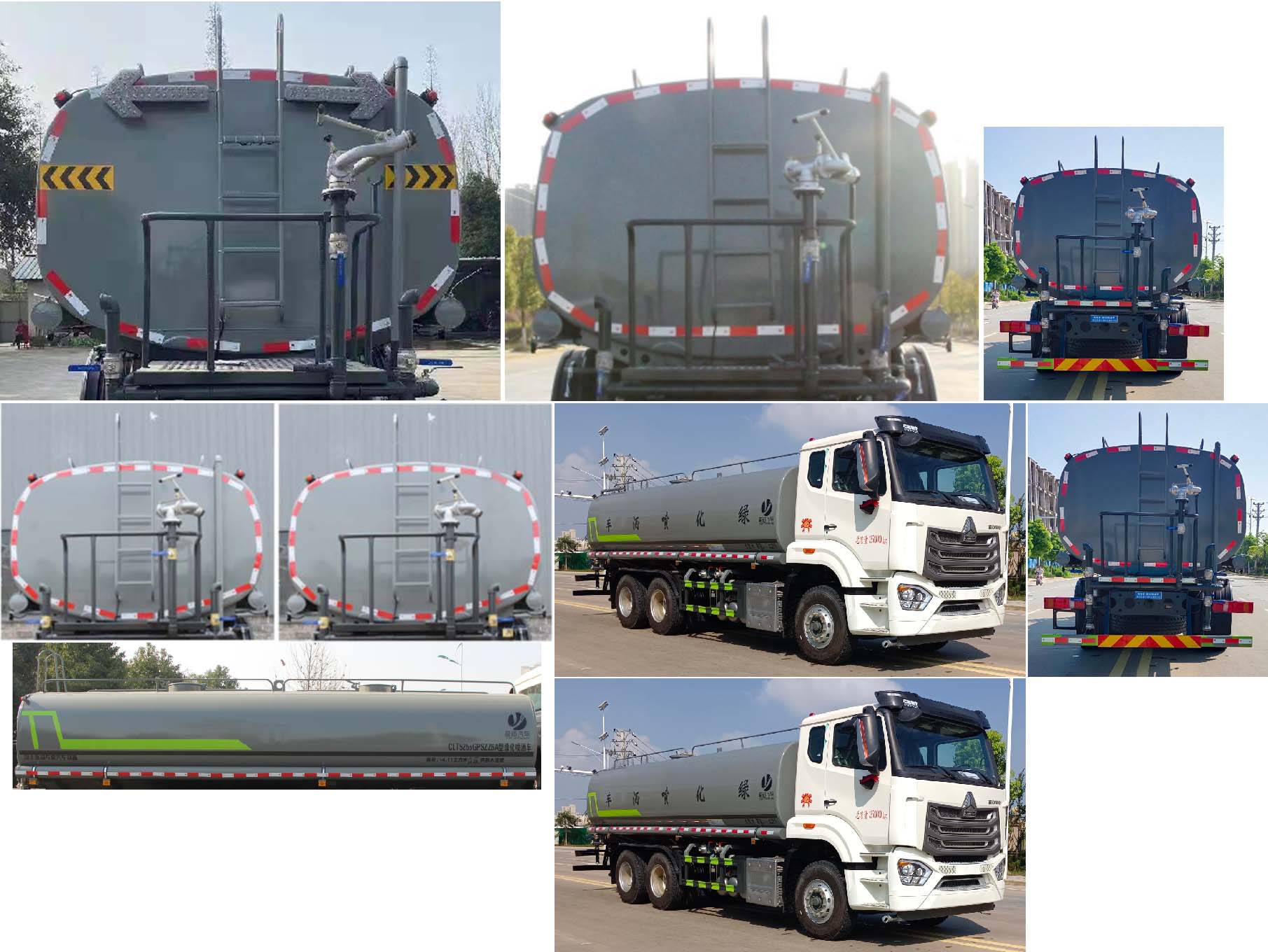 重汽20方灑水車上裝配置: 1、罐體約為 22 方,可加裝 30-40 型霧炮 2、邊燈帶電,罐體尾部上方標配 2 個紅色示寬燈, 3、標配前噴為鴨嘴直沖,標配后沖,用戶可根據自己的需求,來調 整對沖位置。 4、花紋防滑平臺,炮筒后蓋為定制型螺栓卡扣, 5、前噴、后沖、后灑、側噴,綠化高炮開關球閥均采用 50 大通經 不銹鋼球閥, 6、新式軸承式水炮,更加耐用, 7、60-90 型水泵, 8、防腐法蘭墊片, 9、鋁制后灑,不易炸開 10、罐體自動焊(美國林肯焊機及電源),拼板自動焊接,封頭環 縫焊接,無氣孔,焊縫美觀。 11、側護網、后保險杠、均為螺栓連接,方便拆卸,維修方便。 12、塑料擋泥板,替代鐵擋泥板,更加輕便,用螺栓連接,方便拆 卸。 13、前部、后部主管連接處為 6 孔圓法蘭,不易沖墊