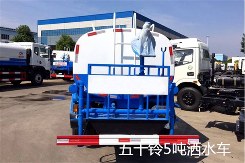五十鈴5噸灑水車配置:罐體容積: 5立方(噸),發(fā)動機(jī): 五十鈴120馬力,變速箱:5檔,輪胎:7.00R16,五十鈴5噸灑水車罐體材質(zhì)為厚4mm武鋼優(yōu)質(zhì)板材,灑水泵,灑水高炮,工作平臺,取力器,前沖,后灑,萬向嘴,自流閥,濾網(wǎng),分配閥,噴頭,帶自吸自排功能,選配:五十鈴5噸灑水車可加裝灑藥盤、藥泵、罐內(nèi)防腐防銹、多方位進(jìn)出水接頭、電磁閥、氣動閥等先進(jìn)設(shè)施,以滿足不同用戶需求。