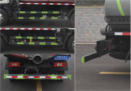 該車用于糞便,污液的收集和清理作業,主要裝置為罐體和吸糞裝置;罐體有效容積:4.63立方米;罐體外形尺寸(長×長軸×短軸)(mm):3500×1650×1200;隨底盤選裝駕駛室;側、后防護材料均為:Q235碳鋼,連接方式均為:螺栓連接,后部防護截面尺寸(mm):120×50,后部防護離地高度(mm):420;ABS系統控制器型號為CM4XL-4S/4M,ABS系統控制器生產企業為廣州瑞立科密汽車電子股份有限公司.選裝出口樣式。選裝油箱出口位置。