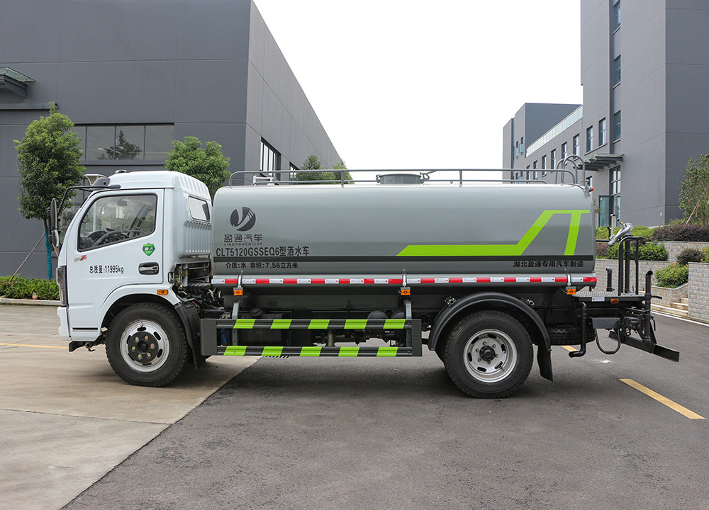 三.產品主要技術參數 序號 名稱 型號、規格 1 整車型號 CLT5140GSSEQ6 型灑水車 2 發動機型號 D40TCIF1 3 發動機馬力/功率 云內 185 馬力/135KW 4 發動機排量 4052ML 5 變速箱 法士特 8 檔(帶高低檔) 6 輪胎規格 8.25 鋼絲胎 7 軸距 3800 8 總質量 14060KG 9 整備質量 5290KG 10 額定載質量 8575KG 11 整車尺寸(長×寬×高) 7*2.3*2.8 12 罐體容積 10 方 13 燃料種類 柴油 14 排放標準 國六 15 水泵型號 40/50 16 罐體材質 Q235 碳鋼