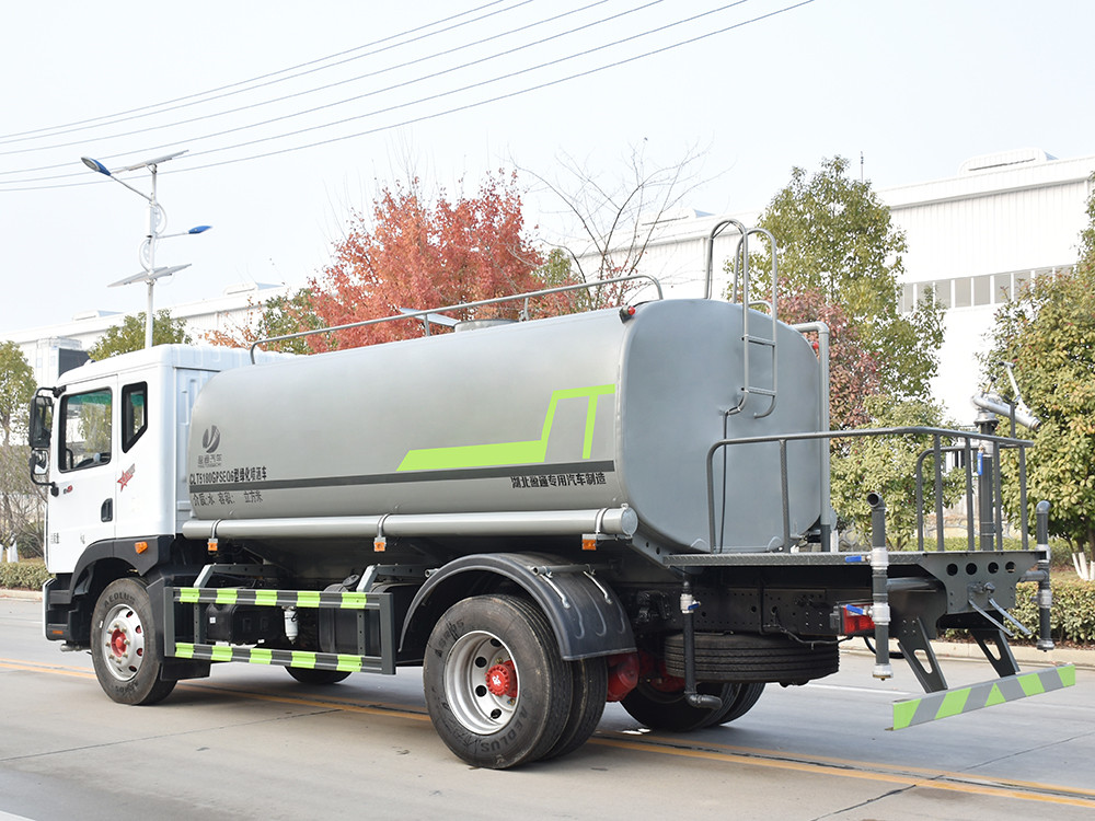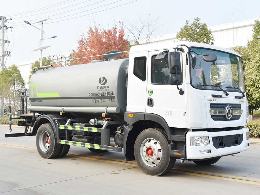 東風D9灑水產品主要技術參數 序號 名稱 型號、規格 1 整車型號 CLT5180GPSEQ6 型綠化噴灑車 2 發動機型號 B6.2NS6B230 3 發動機馬力/功率 康明斯 230 馬力/169KW 4 發動機排量 6200ML 5 變速箱 法士特 8 檔(帶高低檔) 6 輪胎規格 10.00 鋼絲胎 7 軸距 3950 8 總質量 18000KG 9 整備質量 6480KG 10 額定載質量 11300KG 11 整車尺寸(長×寬×高) 7.75*2.5*3.3 12 罐體容積 12 方 13 燃料種類 柴油 14 排放標準 國六 15 水泵型號 60/90 16 罐體材質 Q235 碳鋼