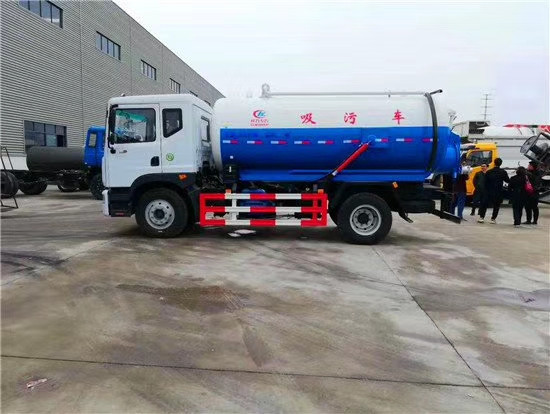 吸污車工作原理和吸糞車相同,但吸污車后蓋可以開啟,罐體可以舉升。加大了排污的方便性,故吸污車主要是抽一些粘稠類污物,如河道淤泥,下水道,建筑泥漿等。