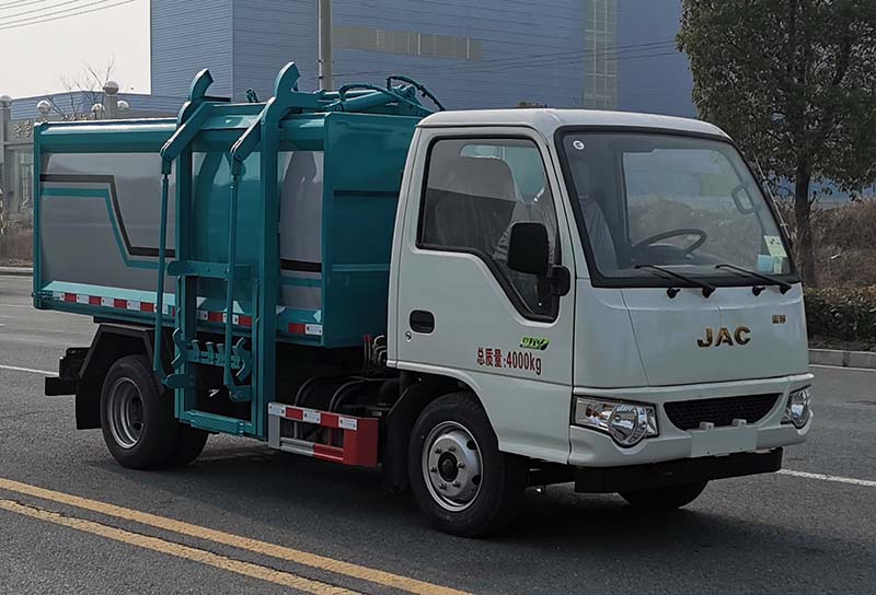 ABS型號:CM4YL;ABS生產企業:廣州瑞立科密汽車電子股份有限公司;可選裝采用直接供電的ETC車載裝置;發動機/油耗值(L/100km)對應關系為:Q23-95E60/11.3,;側后防護情況:側防護采用Q235材料焊接,離地高度:270mm,后防護采用Q235材料焊接,截面尺寸(mm):115×50,離地高度:340mm;專用功能及裝置:用于垃圾的收集清運,主要專用裝置為箱體總成,掛桶機構.