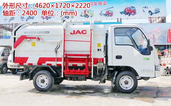 江淮康鈴X1掛桶式垃圾車,柳汽87馬力,5檔變速箱,1.4T后橋,2400軸距,175R14LT(后單胎),帶暖風、空調(diào)、可調(diào)方向盤、電預熱、電熄火、不翻轉(zhuǎn)、金屬漆。