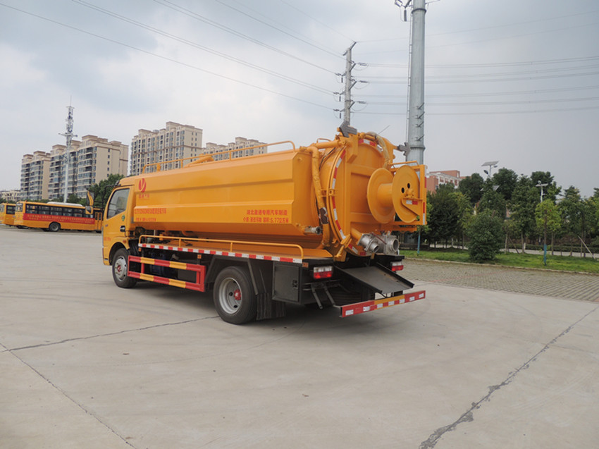 吸污車底盤配置: 采用東風原廠多利卡底盤,白色駕駛室(顏色可選),萬里揚6檔變速箱,軸距3800mm, 245真空胎,原廠abs,帶方向助力,離合助力器,氣剎制動,帶冷暖空調。