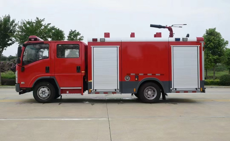 重慶五十鈴2-3噸消防車(chē)慶鈴QL1070A6HWY底盤(pán)改裝,平頭雙排駕駛室,液壓翻轉(zhuǎn),五十鈴4KH1CN5LS發(fā)動(dòng)機(jī),98馬力,國(guó)五排放,罐體容積2-3立方米;整車(chē)結(jié)構(gòu)緊湊,方便靈活,動(dòng)力性能好,車(chē)速高,能自由進(jìn)出鄉(xiāng)村狹窄道路及小區(qū),具有大型消防車(chē)的全套消防功能,上裝箱體的上裝骨架全部采用引進(jìn)歐洲技術(shù)生產(chǎn)的鋁合金型材制造,整車(chē)的重量減少,機(jī)動(dòng)性能和整車(chē)載重量提高。除了裝備消防水泵及器材以外,還設(shè)有較大容量的貯水罐及水槍、水炮等。可將水和消防人員輸送至火場(chǎng)獨(dú)立進(jìn)行撲救火災(zāi)。也可以從水源吸水直接進(jìn)行撲救,或向其他消防車(chē)和滅火噴射裝置供水。在缺水地區(qū)也可作供水、輸水用車(chē),主要適用于大中城鎮(zhèn)、鄉(xiāng)村狹窄街道、城市小區(qū)、繁忙的批發(fā)市場(chǎng)等場(chǎng)所的一般物質(zhì)滅火,閑暇時(shí)可用于園林噴灌、道路清灑。