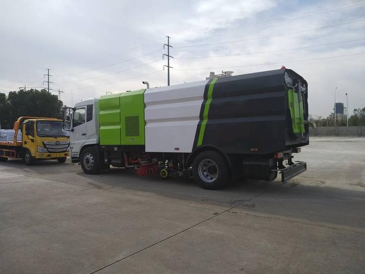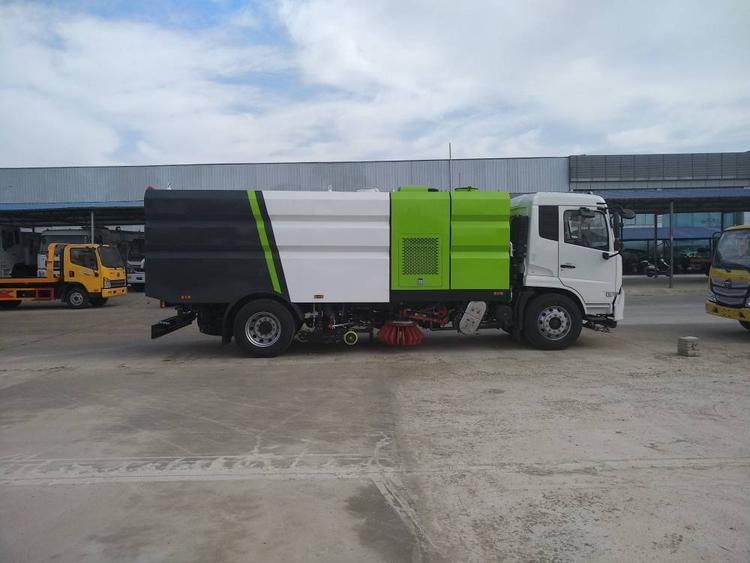 國六東風天錦洗掃車 箱體容積9立方水7立方塵.中置2掃盤、康明斯170馬力副發動機(多利卡為140馬力康明斯副發動機),德國品孚高壓水泵(前沖側噴中噴后噴霧側沖洗車水槍垃圾箱自潔裝置)、高壓路沿清洗噴頭,威龍低壓泵,(前沖)不銹鋼垃圾箱、不銹鋼高壓管路,德國控制器西門子電器原件、水箱均帶防溢或低水位報警裝置;倒車及洗掃狀態室內監視器、18m高壓沖洗卷盤、清掃寬度3.5m;清洗壓力10Mpa,吸入顆粒度120mm.