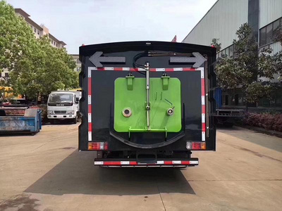 7、垃圾箱采用雙層內膽不銹鋼結構,內部加裝過濾網板,能有效地防止樹葉、塑料袋之類的輕飄物堵塞風口及灰塵的排出。內置污水報警系統,通過后門處污水閥方便的將污水排至下水道,最大限度的利用了垃圾箱裝載垃圾的空間。廂體采用傾翻卸料,帶高壓沖洗自潔裝置。