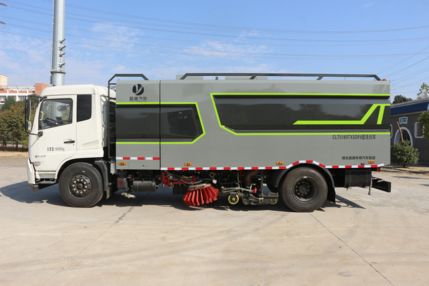 1.CLT5180TXSD6型洗掃車適用于城市道路、高速公路、廣場、機場、碼頭、遂道、橋梁、隔離墻避、路緣和路緣石立面的機械化清洗、清掃、噴霧降塵等清潔作業。具有路面清洗、路面清掃、路緣清洗、路緣和路緣石立面洗刷、低壓沖洗、噴霧除塵等多功能。有“全洗掃”、 “右洗掃”、 “全掃”、 “右掃”4種作業模式可選擇。選擇“全洗掃”模式清洗廣場和路面,清洗效率高效果好,洗凈率達90%以上。選擇“左洗掃”或“右洗掃”模式清洗路面和路緣、洗刷路緣石立面。需要進行路面清掃或路面保潔作業時,可選擇掃路模式。需要噴霧除塵時,可開啟噴霧裝置,進行噴霧除塵作業?梢韵灑水車一樣對路面進行低壓沖洗作業。
