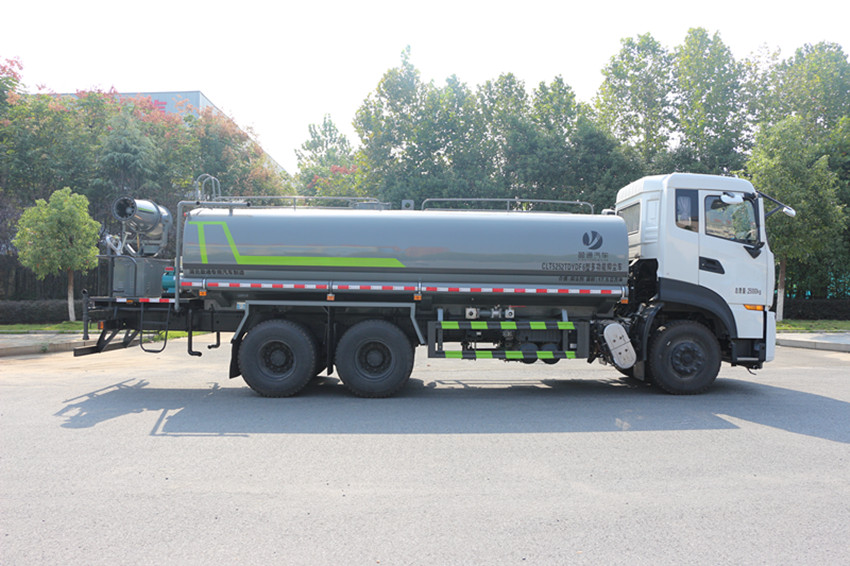 ABS型號:3631010-C2000,ABS 8,4460046450;ABS生產企業:東科克諾爾商用車制動系統(十堰)有限公司,東科克諾爾商用車制動系統(十堰)有限公司,威伯科汽車控制系統(中國)有限公司;選裝描述:隨底盤選裝駕駛室,選裝附件布局;側后防護情況:側、后防護材料均為:Q235碳鋼,連接方式均為:螺栓連接,后部防護截面尺寸(mm):120×50,后部防護離地高度(mm):480;罐體有效容積(立方米)、罐體外形尺寸(mm):罐體有效容積:14.4立方米;罐體外形尺寸(長×長軸×短軸)(mm):6200×2390×1420;專用功能及裝置:該車主要用于城鄉園林綠化噴灑;主要裝置為水罐及噴灑裝置; |