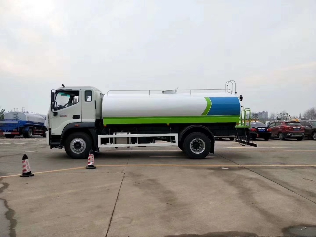 整車說明:隨底盤選裝駕駛室前臉樣式,擴展后部結構樣式,僅采用4500mm軸距,有效容積:11.34立方米,罐體外形尺寸(長×長軸×短軸)(mm)為:5200×2300×1420,5200×2300×1410;主要裝置為水罐,灑水泵,主要用于城市灑水、壓塵; ABS型號為CM4XL-4S/4M,生產廠家為廣州瑞立科密汽車電子股份有限公司.;側面防護裝置材料材質:Q235,連接方式:螺栓連接;后下部防護裝置材料材質:Q235,連接方式:螺栓連接,斷面尺寸(寬×高):50×120(mm),離地高度:460mm.