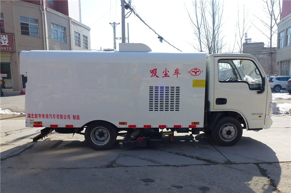 該吸塵車(chē)是采用躍進(jìn)型國(guó)五二類原廠汽車(chē)底盤(pán)改裝,加裝副發(fā)動(dòng)機(jī)、風(fēng)機(jī)、清水箱、垃圾箱、中置吸盤(pán),工作視頻探頭,自動(dòng)脈沖清理功能,液壓系統(tǒng)、專用裝置電控系統(tǒng)和副車(chē)架等改裝而成。