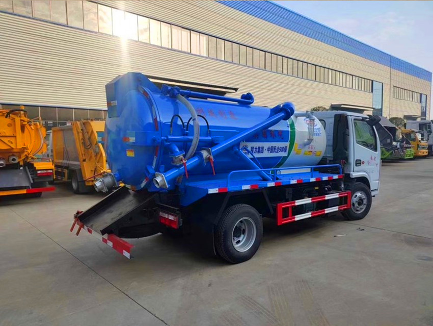 東風5噸吸污車該車裝有取力器,真空泵,高壓水泵等;罐體總長(mm):3600,其中水罐前下部用于安裝高壓泵,水罐罐體有效容積:1.92立方米,罐體外形尺寸(長×直徑)(mm):1800×1200;吸污罐罐體有效容積:1.92立方米,罐體外形尺寸(長×直徑)(mm):1800×1200;水罐和吸污罐為兩個獨立罐體,兩罐不能同時滿載;防護材料:Q235A碳鋼,連接方式:左右側(cè)面防護以及后部防護采用焊接連接,后防護斷面尺寸(mm):100×50,后部防護離地高度(mm):350;整車長/軸距/后懸對應關(guān)系為(mm):5995/3308/1632,5915/2950/1910,5510/2700/1755; 隨底盤選裝駕駛室,ABS型號/廠家:ABS/ASR-12V-4S/4M/襄陽東風隆誠機械有限責任公司,選裝清洗罐體和吸污罐體功能高度集成的圖片,擴展左右側(cè)以及后部樣式。