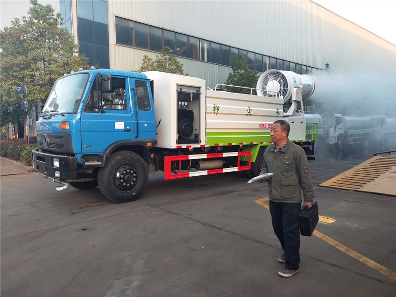 抑塵車吸程≧7米,灑水寬度≧14-16米,射程≧25-40米,引水時間<5min,流量60m3/h。前沖(噴)、后灑、帶側噴(花灑)、帶后工作平臺、平臺上安裝綠化灑水高炮(炮噴射形狀可調節:直沖、大雨、中雨、毛毛雨、霧狀、可連續調節,360°旋轉),配消防接口,自流閥,濾網,帶自吸自排功能。配備大功率專用灑水泵,泵可自吸自排,安裝過濾網,帶消防接口,可通過消防栓進水,帶自流閥,此車尾部加裝大功率農藥噴灑炮,噴灑狀態霧狀,有效射程15-45米,外部平臺帶獨立的機組。