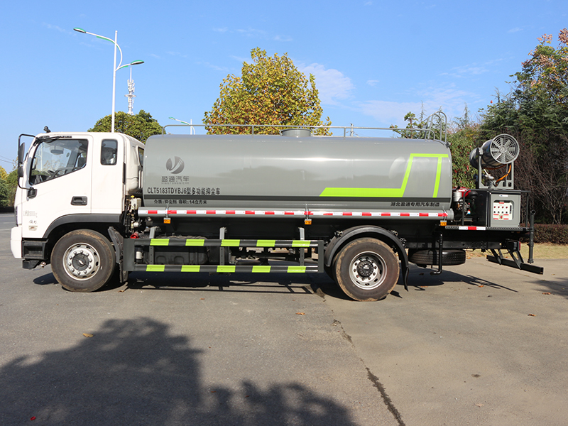 福田瑞沃15m3抑塵車標準配置灑水車主要裝備有:前沖(沖洗公路路面)、后灑(公路路面養護)、側噴、高位側花灑(路邊綠化帶優化);后工作平臺高壓水炮,可調節成柱狀,射程≥28m;也可調節成霧狀,射程≥30米,水泵自吸高度:≤7m,灑水寬度:≥15m。側防護網,自流閥,消防接頭。灑水車水泵為常壓水泵,功能可以抽水、排水。另外根據用戶要求,可加消防泵、噴霧機、農藥卷盤、農藥柱塞泵。罐內可以做防腐防銹、電磁閥氣動閥自動放水等****,以滿足不同用戶需求。
