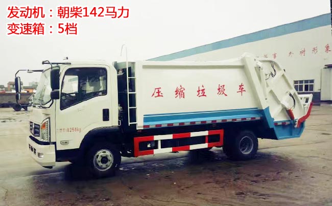 垃圾車容積7~8m3,箱體邊4底4,內置推板、刮板,底部有污水箱,采用國產內知名油缸、油泵、多路閥,后反轉樣式為掛桶式后翻轉。