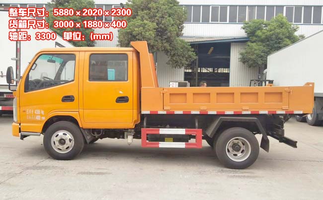 箱體容積5立方米,貨箱尺寸長3米,款1.88米,高0.4米,雙缸液壓舉升,后蓋手動(dòng)開啟。